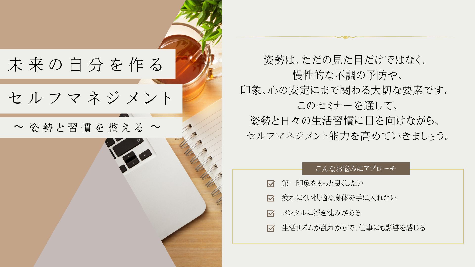 「未来の自分をつくるセルフマネジメント 〜姿勢と習慣を整える〜」